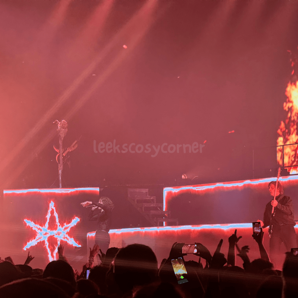 One song I had my fingers crossed that they would play is Kingslayer ft BABYMETAL. It’s a dream collaboration and features one of my favourite groups. Although BABYMETAL weren’t there in person, they were through fox-like persona’s on the main screen. The crowd were so loud for this song. At this point in the show, probably the loudest yet. Even the intro shouting “DO DO DO DO DO DO DODODO DO DO DODO DO DO DO!” It was such a fun song and one of my favourite moments from the show.