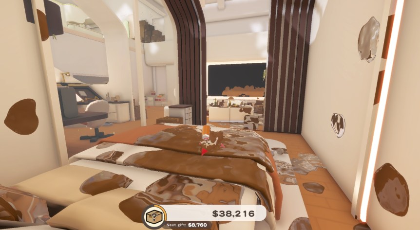 Getting started, I just began to run around the house exploring just how big of a task I had ahead of me. As well as making everything as mucky as possible, this innocent-looking pomeranian had another task. To find and uncover twelve secret paintings. These were dotted around the house in different locations. Little hints within the area would lead you to where they were located.