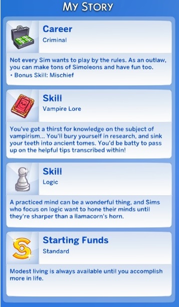 Let’s take a look at how my Story Quiz is going to shape my new Sim!