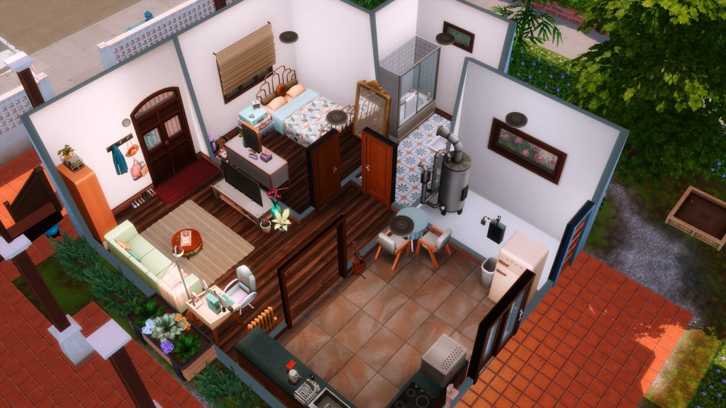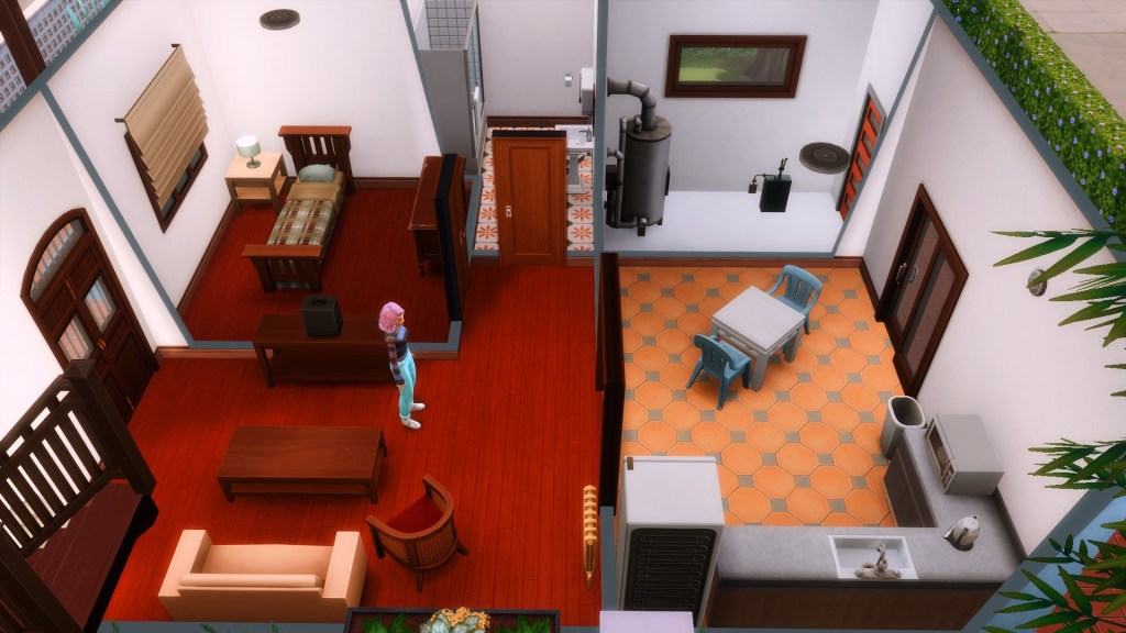 Nothing overly fancy but it was a good starting point for my Sim. After deleting the entirety of the living room, bedroom and kitchen, I started over. I was okay with leaving the bathroom as it was for now and would tackle that later.