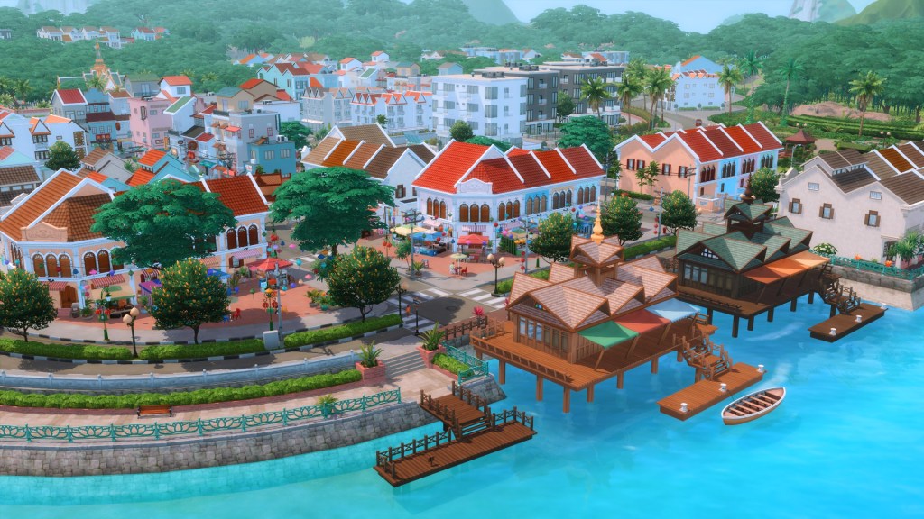 Eventually, I settled on residing in Tomarang from The Sims 4 For Rent expansion pack. This is mainly because despite owning the expansion since its launch at the end of 2023, I’ve not actually played with it.