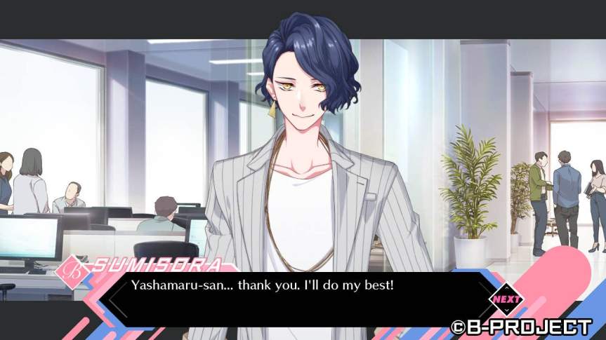 It will be interesting to see just how this journey between Sumisora and the idols of B-PROJECT continues as I progress through the visual novel.