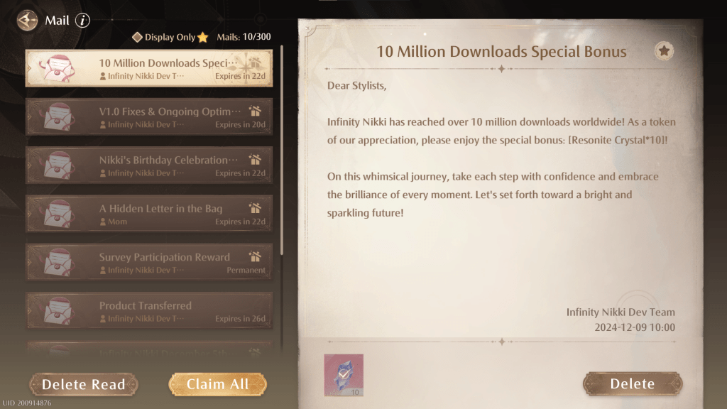 Always check your Mailbox for new letters from Infold Games and make sure you claim any rewards that may have been attached to any letters.