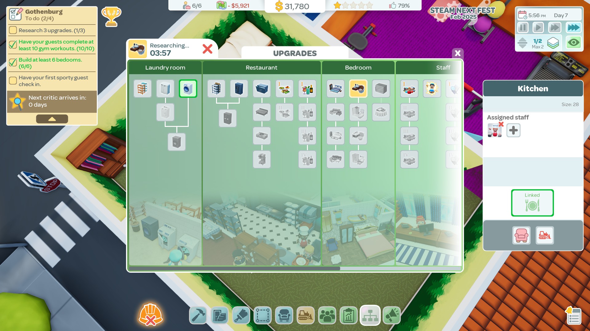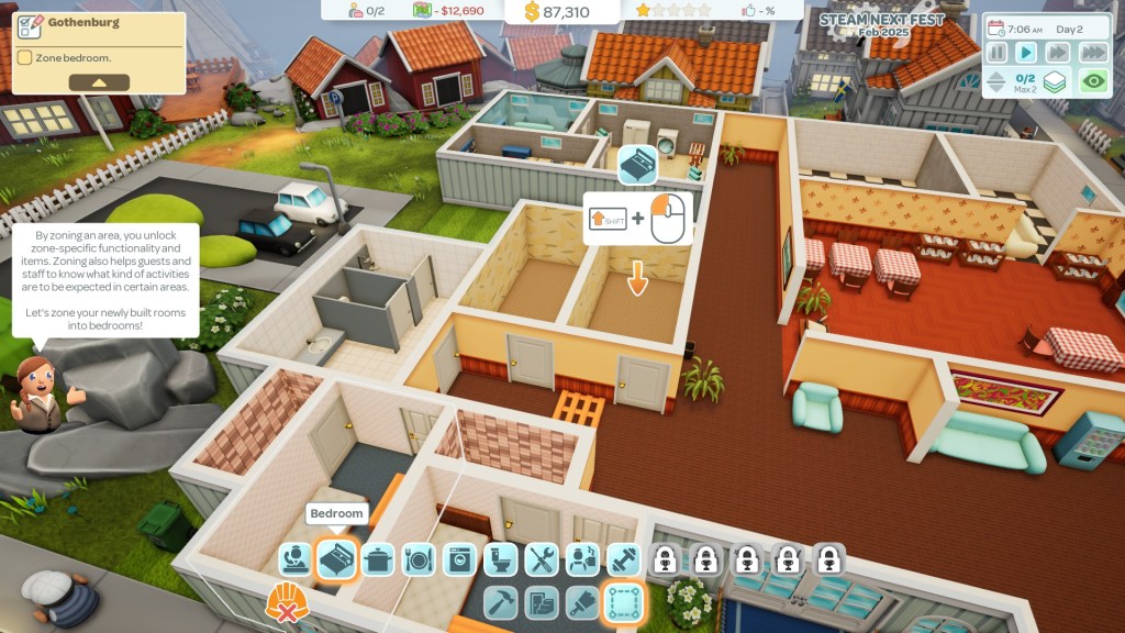 The Steam Next Fest demo for Hotel Architect is the perfect introduction to the game. From showing you the basics to managing the chaos while ensuring you are keeping your guests satisfied.