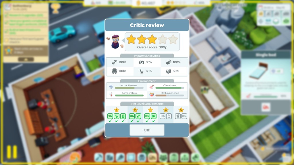 There is always something to think about, not just your next move, or how you are going to expand the hotel, but more about the finer details too. Streamlining processes, having a dream team, remembering to send contractors home once you no longer need them and more. It can seem overwhelming to start with trying to balance everything, keep money flowing in at a good pace and ensuring guest satisfaction is high but somehow, you find a way to manage. All of this while completing objectives, seizing opportunities, acing critic reviews and more.