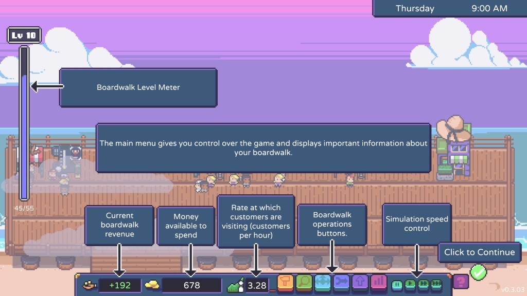 So whether you are looking to upgrade your boardwalk experience, navigate tricky weather situation or just want to sit and relax while your boardwalk ticks over in the background, this is an overall pleasant and chill game demo to pick up, play and build your Boardwalk empire!