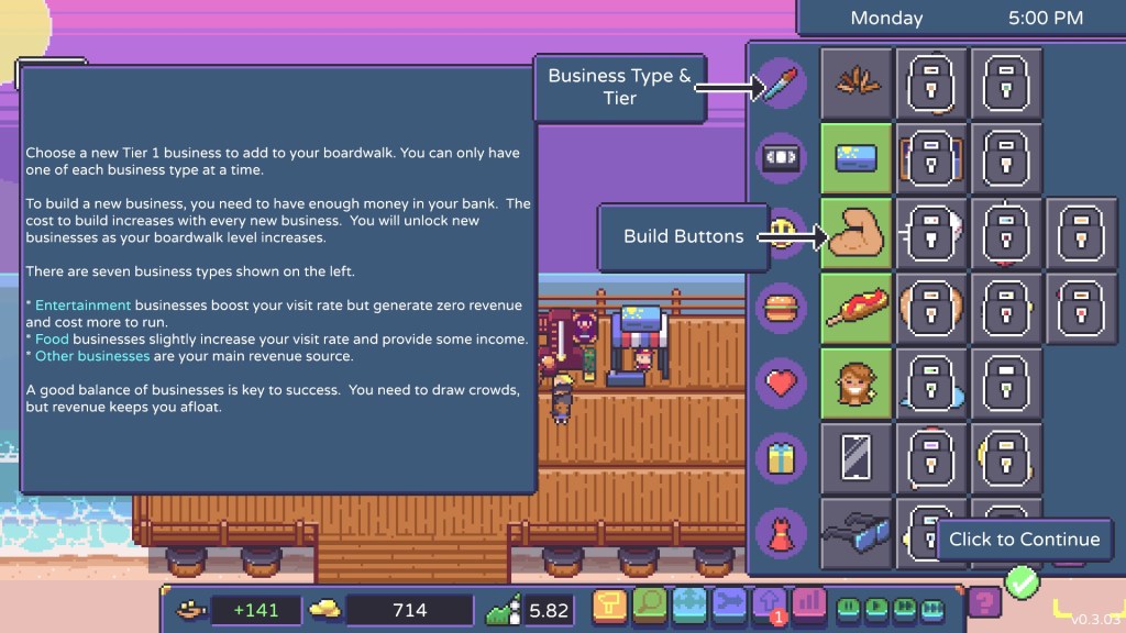 Placing businesses is easy and with some, you can place more than one. Although the stand price will go up, you can still continue to grow your boardwalk experience.