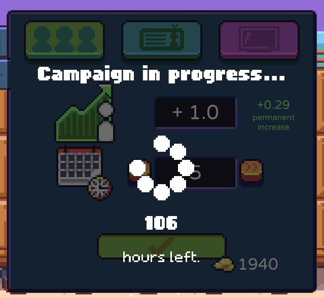 To help draw more visitors to your boardwalk, you can initiate various campaigns. You determine the length of time they run for and whether you want them to run via social media, radio or television. These aim to help increase your base visitor levels.