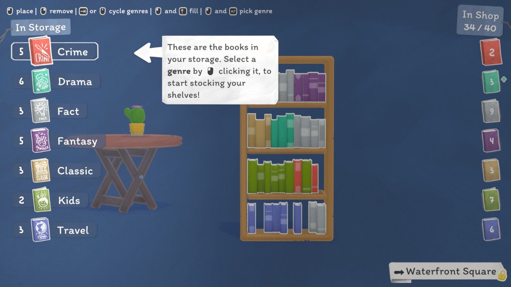 For example, the second location I visited in the demo took me to a beachfront where lots of families with children go. So, when restocking my books, I added a few extra Kids books just to make sure I had plenty,