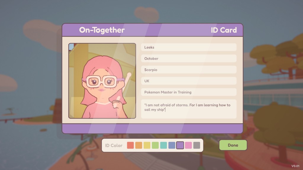 Now, we quickly needed to create our Identification Card, and then we were ready to set off into On-Together properly!