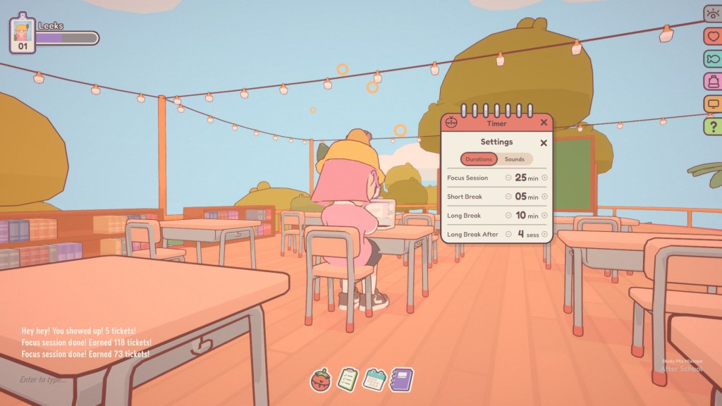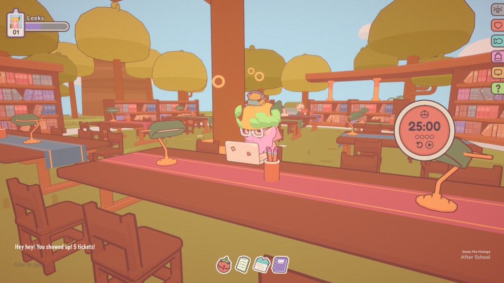 After acquiring a rather interesting candy floss beard, I was back exploring. I found myself in a study area and took the time to look into the productivity and focus tools that come with the game.