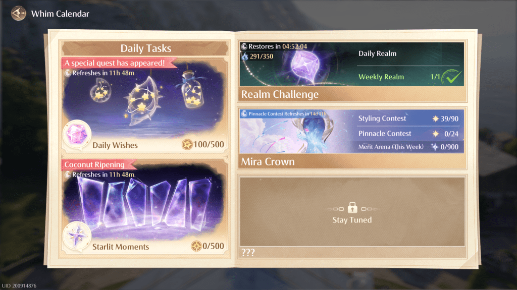 Starlit Moments are similar to Daily Wishes, however are focused more around the Sea of Stars area of the game. Again, there are several tasks you can complete for various rewards.
