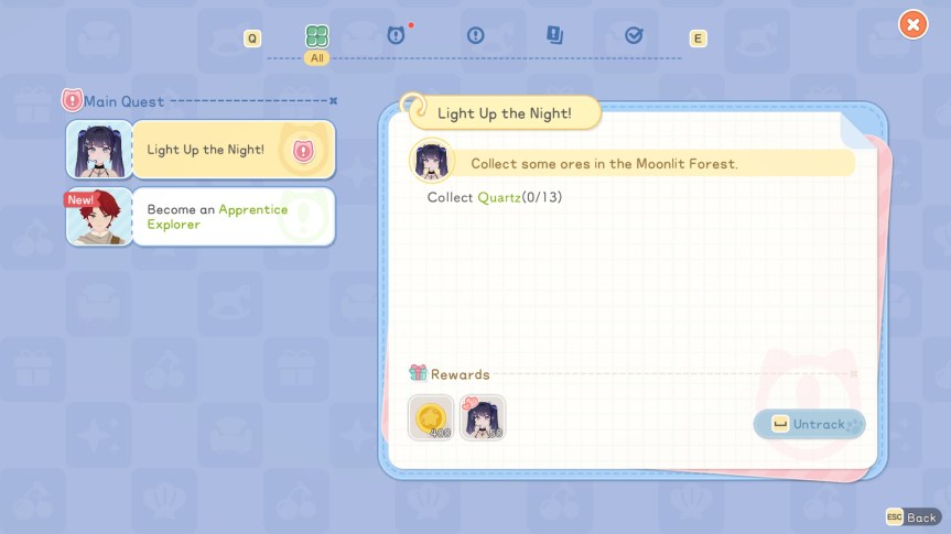 With a total of five different professions to learn and develop skills in, I found myself chipping away at the various tasks needed to progress. The five professions are Crafter, Farmer, Rancher, Archer and Explorer with the first of the three being the core professions. All of these appealed to me from the get go that it was difficult to know where to focus first. I wanted to really focus on just one of the five professions, but I wasn’t sure how easy that would be, so I decided to choose a cosy yet chaotic route of going all in on all five at once. After all, it was still early days in my time with Starsand Island.